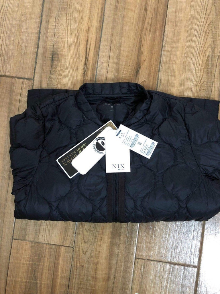 Áo phao lông vũ chần bông NIx xuất Hàn màu đen. Áo này mỏng và siêu nhẹ. Gam màu unisex bé trai bé gái đều mặc được. Size to từ 120-160 nên mẹ nhỏ bon chen được nhé.