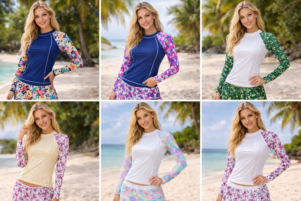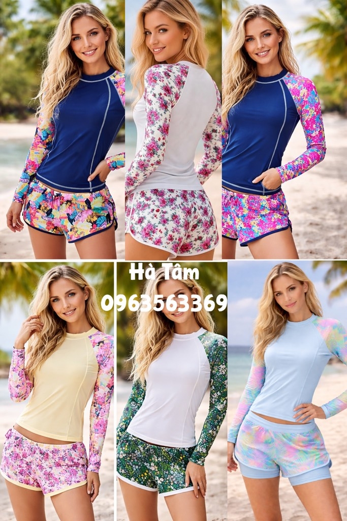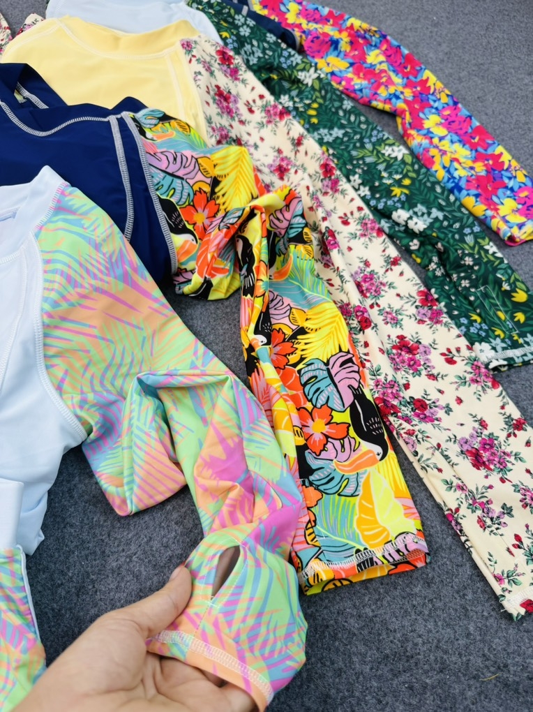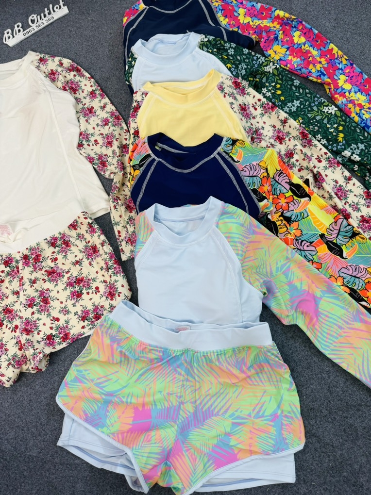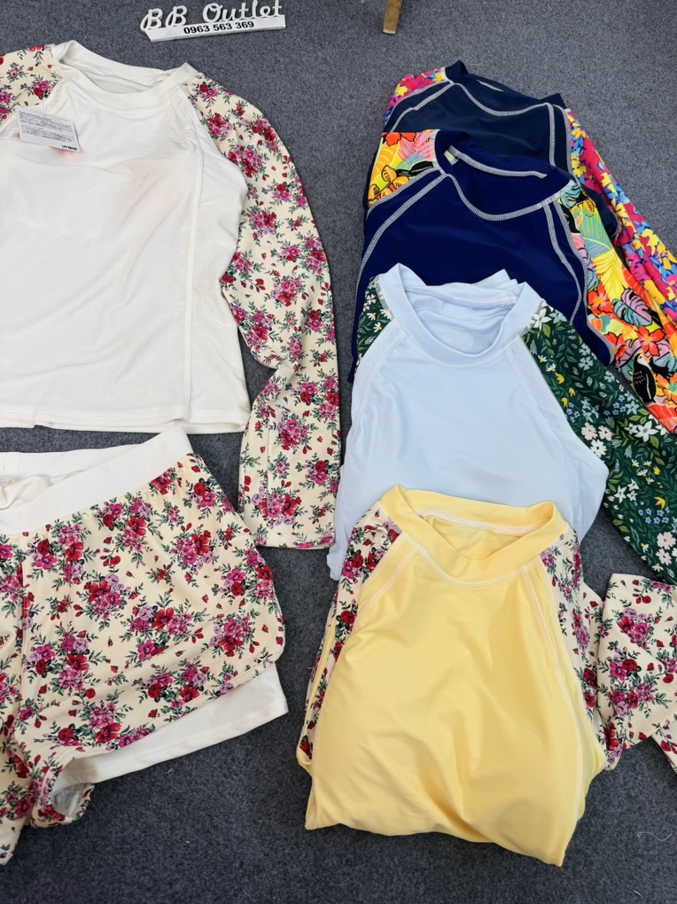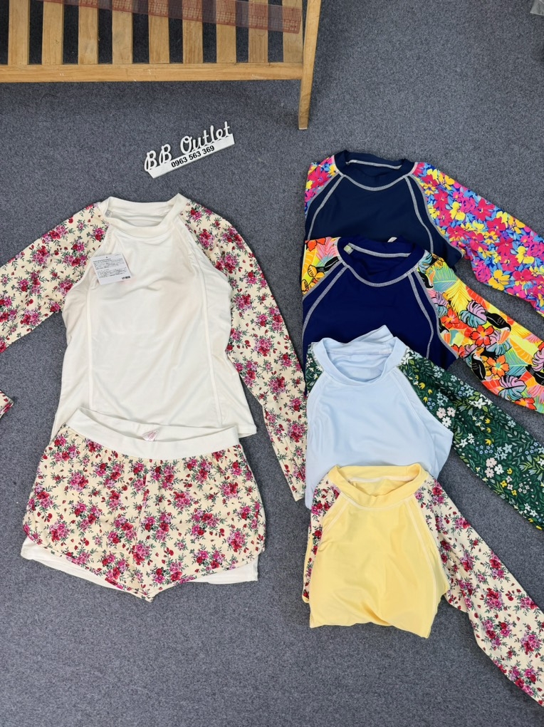 E về được ít bộ áo tắm tay dài, vừa kịp cho các c đi chơi dịp nghỉ lễ sắp tới.
